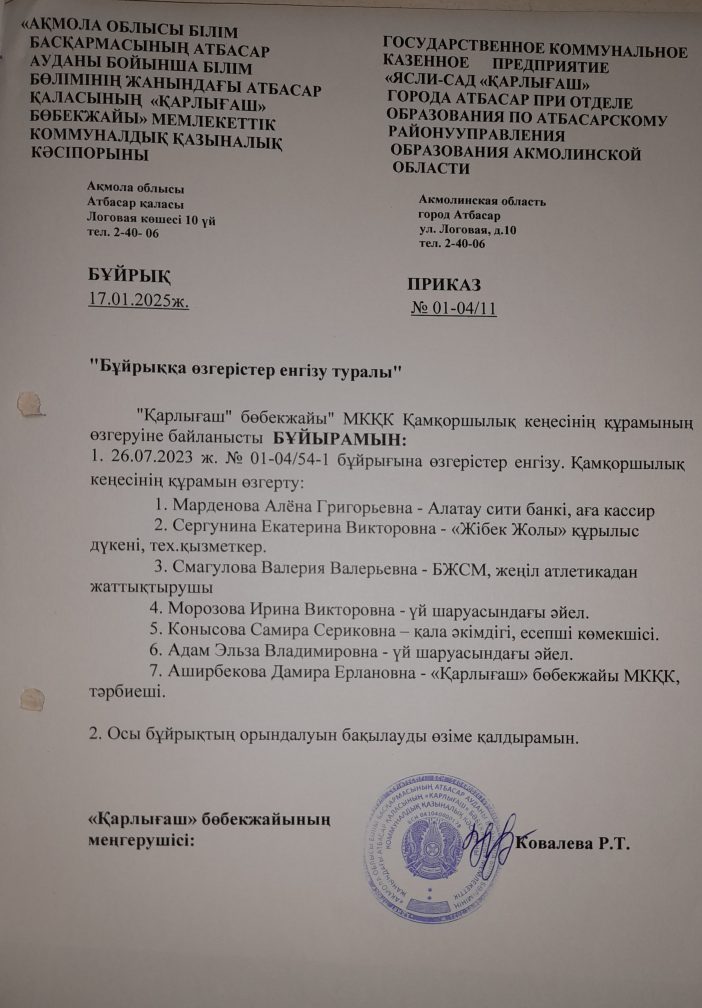 ГККП "Ясли-сад "Қарлығаш" города Атбасар при отделе образования по Атбасарскому району управления образования Акмолинской области