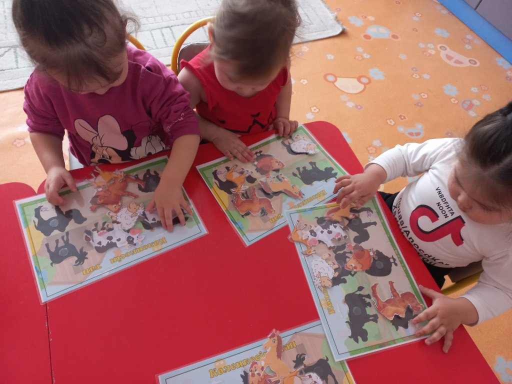 Балаларды жануарларды танып, оларды өз орындарына дұрыс орналастыруға үйрету. Балалардың ойлау қабілетін, зейінін және ұсақ моторикасын дамыту. Жануарларға қамқорлықпен қарауға...