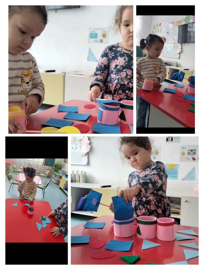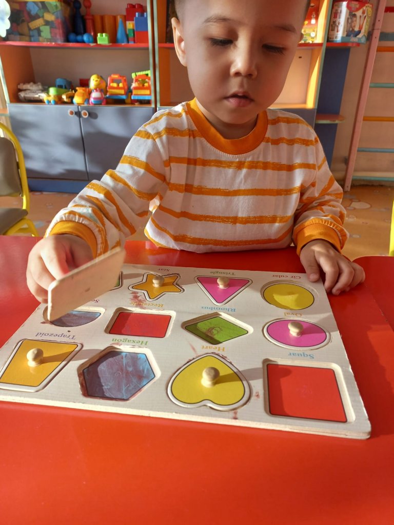 Мақсаты:Пішіндерді сәйкестендіріп, тиісті орнына қоюға уйрету.