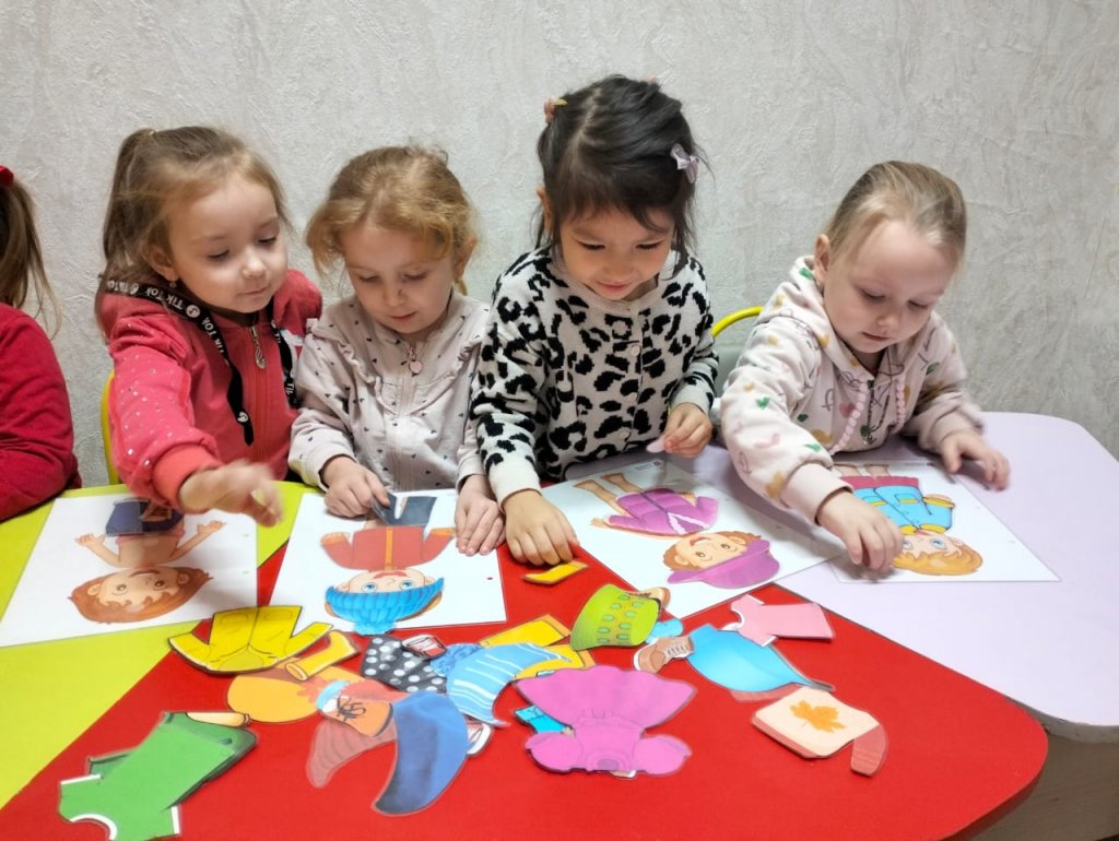 Мақсаты - балалардың киімдер туралы ұғымын молайту. Киімнің қазақша атауларын дұрыс әрі анық айтуға көрнекіліктер арқылы үйрету. Танымдық процесстерін, логикалық ойлауын ойындар арқылы дамыту.