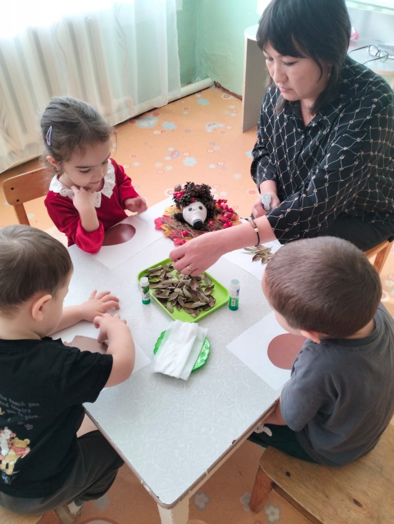 Мақсаты: баларды жабыстыруға уйрету , ұсақ маториканы дамыту Бүгін “Қоңырау тобы” жапырақтармен желімнін көмегімен күзгі бақты бейнеледі