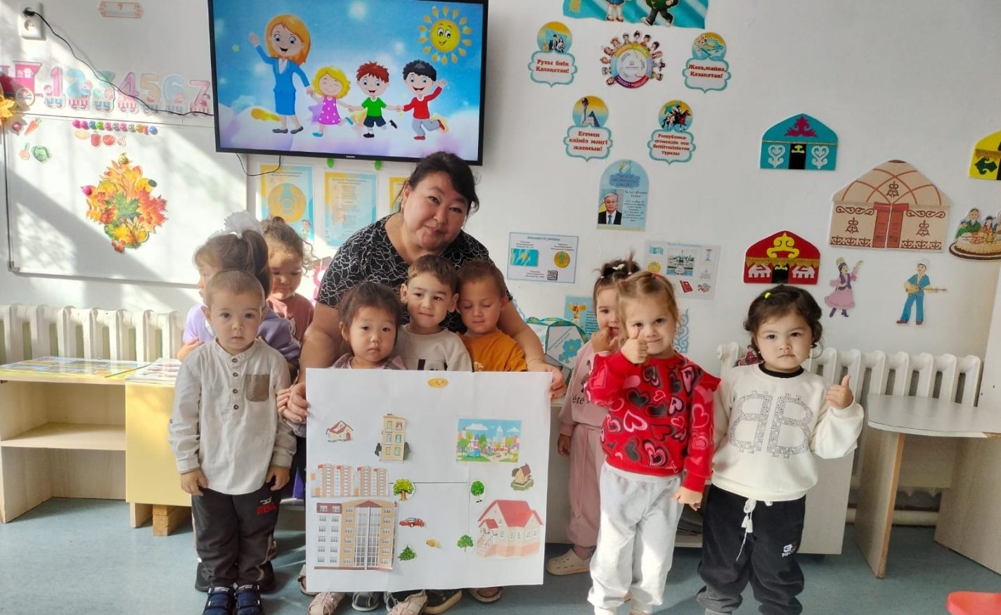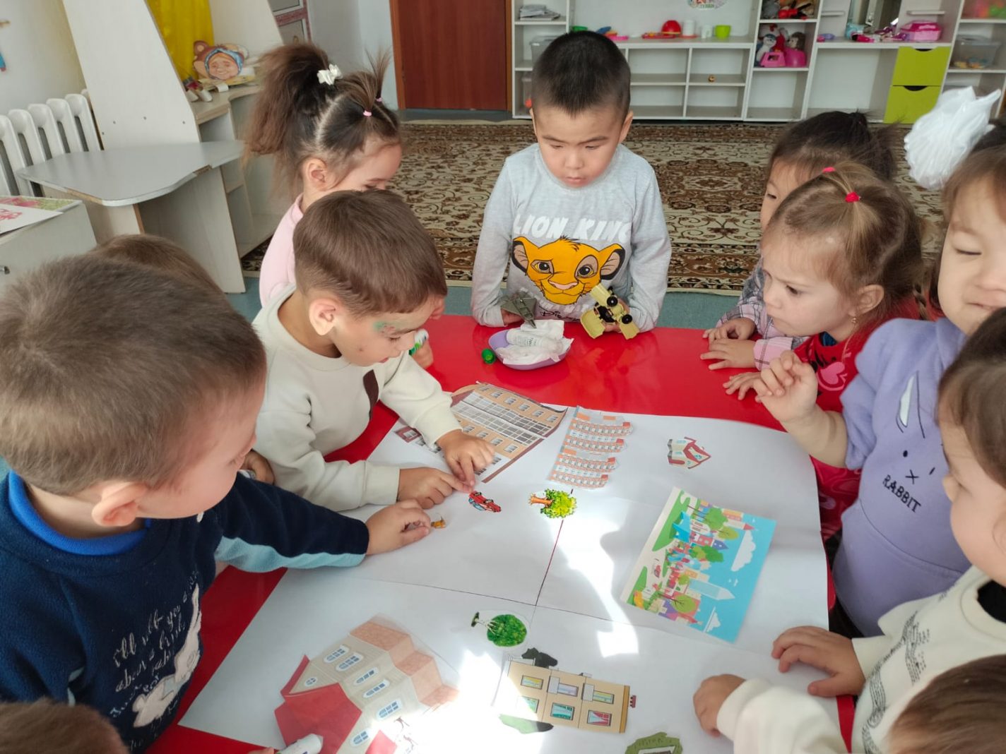 Атбасар қаласының 180 жылдығына орай "Балапан" ортаңғы тобы "Біздің болашақ қаламыз" тақырыбында ұжымдық жұмыс жүргізді. Мақсаты: балалардың қиялын және шығармашылығын аппликациясын жасау арқылы