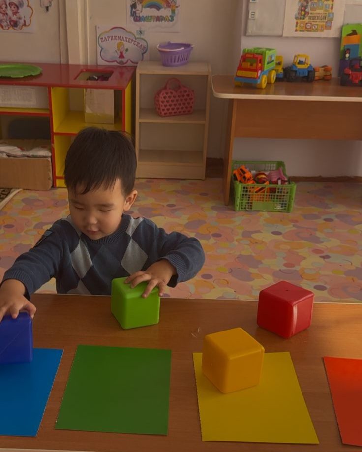 Мақсаты:Баларға негізгі төрт түстерді топтастыруға үйрету. Қызыл,сары,көк,жасыл.