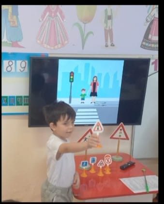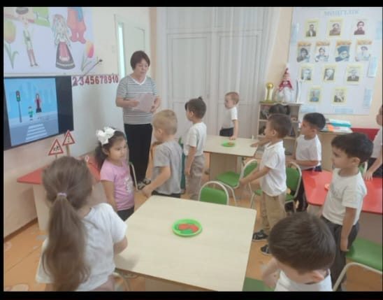 Міндеттері: балаларда көшедегі қауіпті жерлер және олардың жанында қауіпсіз жүріс-тұрыс ережелері туралы түсінік қалыптастыру, зейін мен сақтықты дамыту.