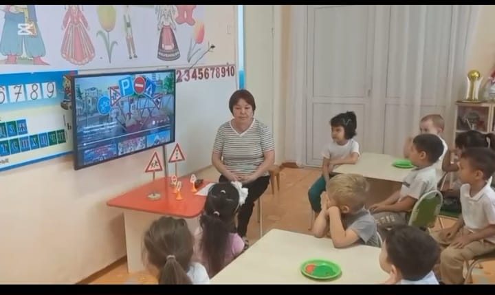 "Адал Азамат" біртұтас тәрбие бағдарламасын жүзеге асыру аясында "Балдырған" мектепалды тобында "Көшедегі қауіпті орындар" тақырыбында сабақ өткізілді.