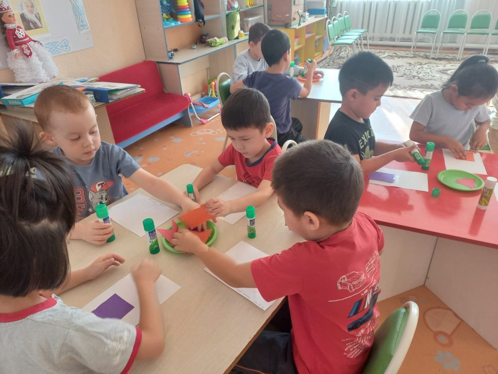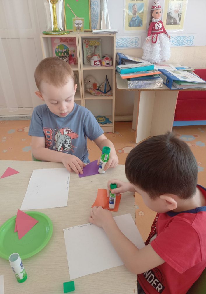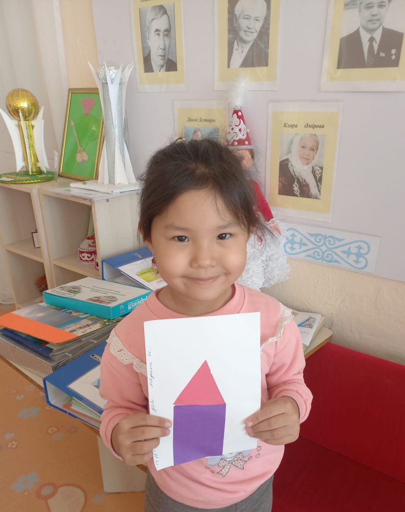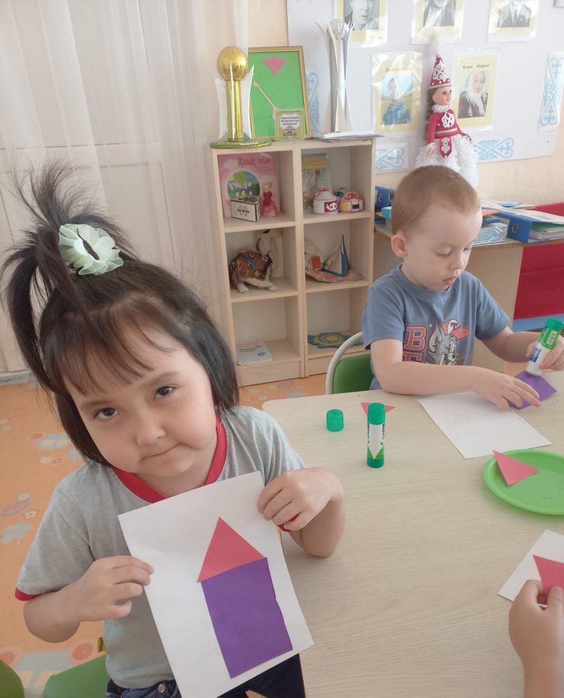 Мектепалды "Балдырған" тобындағы ұйымдастырылған іс әрекет Тақырыбы: "Біз үй саламыз" Міндеттері:геометриялық фигуралардың суреттерін жапсыру дағдыларын бекіту және әртүрлі мамандық иелеріне құрметпен қарауға тәрбиелеу. Организованная деятельность в предшкольной группе "Балдырған"