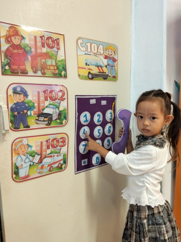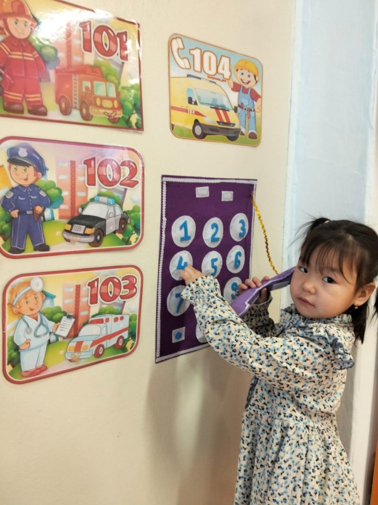 Мақсаты: балаларға жедел қызметтерге дұрыс қоңырау шалуды ,жедел әрекет ету үшін қажетті ақпаратты беруді үйрету .