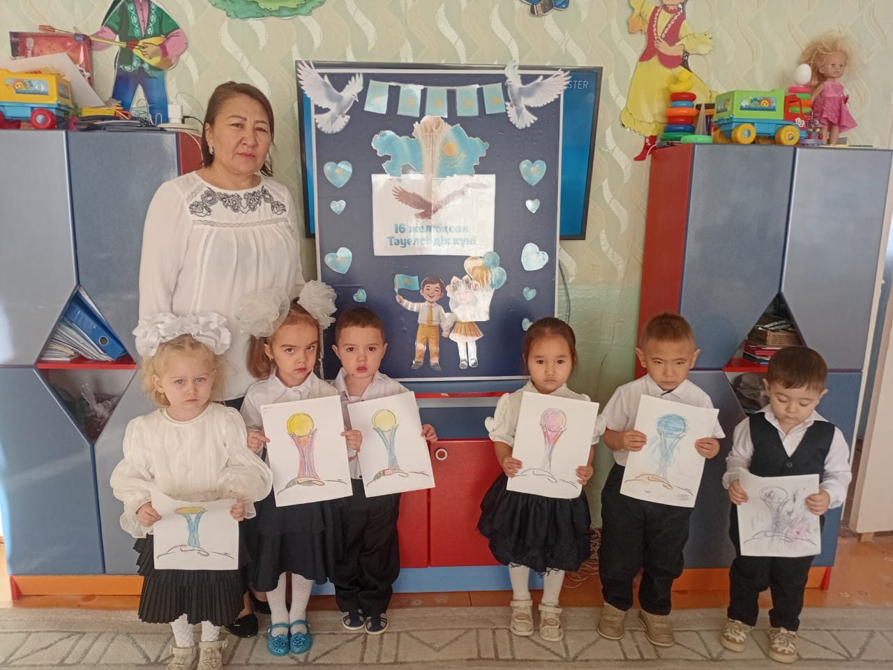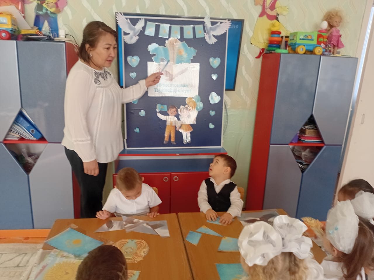 "Гүлдейді бер-Қазақстан" Мақсаты:Балаларға Қазақстан Республикасының Тәуелсіздік күні туралы түсінік беру, мемлекеттік рәміздермен таныстыру -"Айгөлек" санаторлық аралас тобының тәрбиешісі Тайкенова Дария Толешқызы