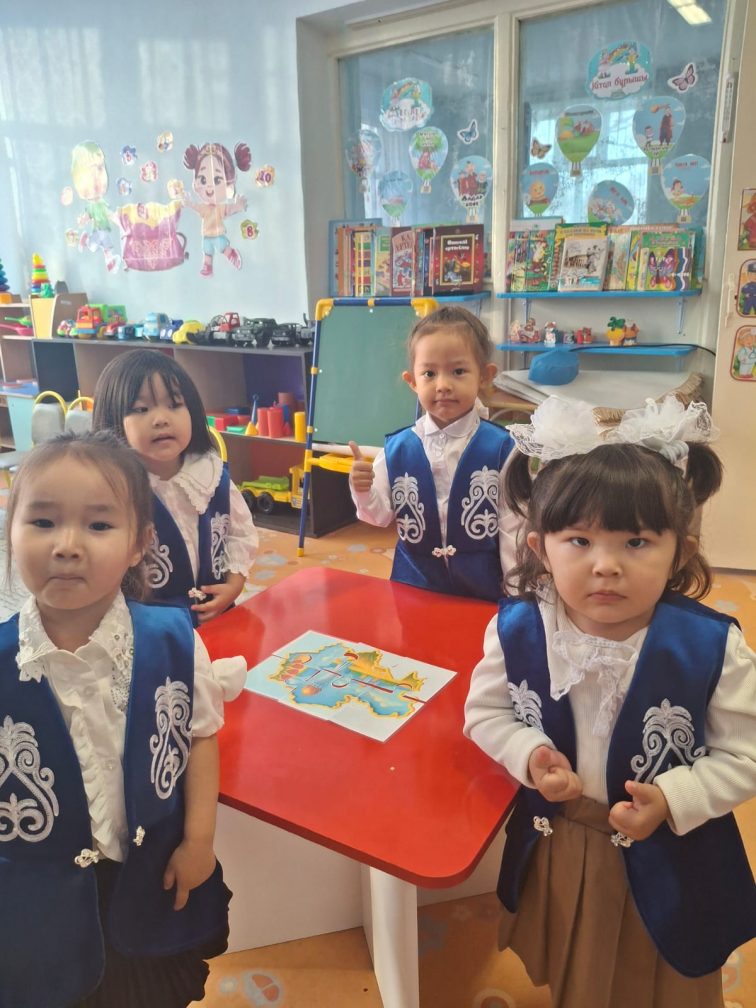 Мақсаты: Балалардың бойында азаматтық жауапкершілік пен патриотизм негіздерін дамыту. Қазақстан Республикасының рәміздері туралы білімдерін бекіту. Танымдық қызығушылықтарын, байланыстырып сөйлеуін, ойлауын дамыту. Туған жерге деген мақтаныш сезімін тәрбиелеу.
