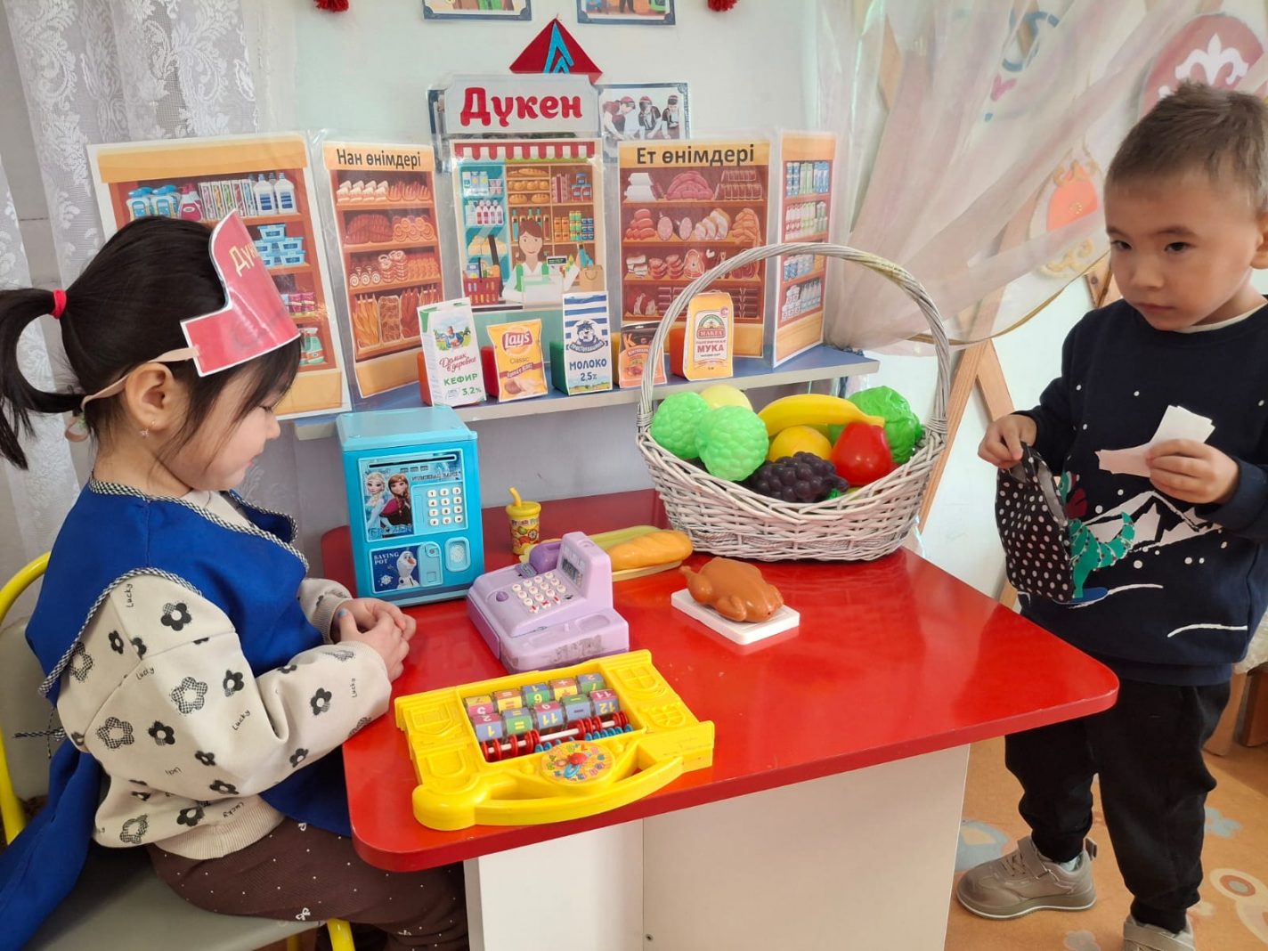 «Адал азамат» бағдарламасы аясында «Қоңырау» аралас жас тобының балалары «Дүкен» және «Ақшаны жұмсауды үйрену» дидактикалық сюжеттік- рөлдік ойындарға қатысты. Бұл ойындардың негізгі мақсаты – қаржылық сауаттылықтың негізгі дағдыларын дамыту.