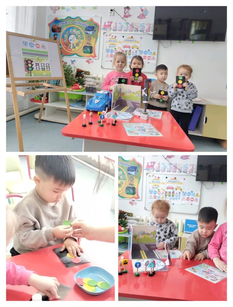 "Жол жүру ережесі" Мақсаты: Балалардың жолда өзін дұрыс әрі қауіпсіз ұстау дағдыларын дамыту, бағдаршам белгілерін ажырата білуге үйрету. "Балапан"ортаңғы тобы.
