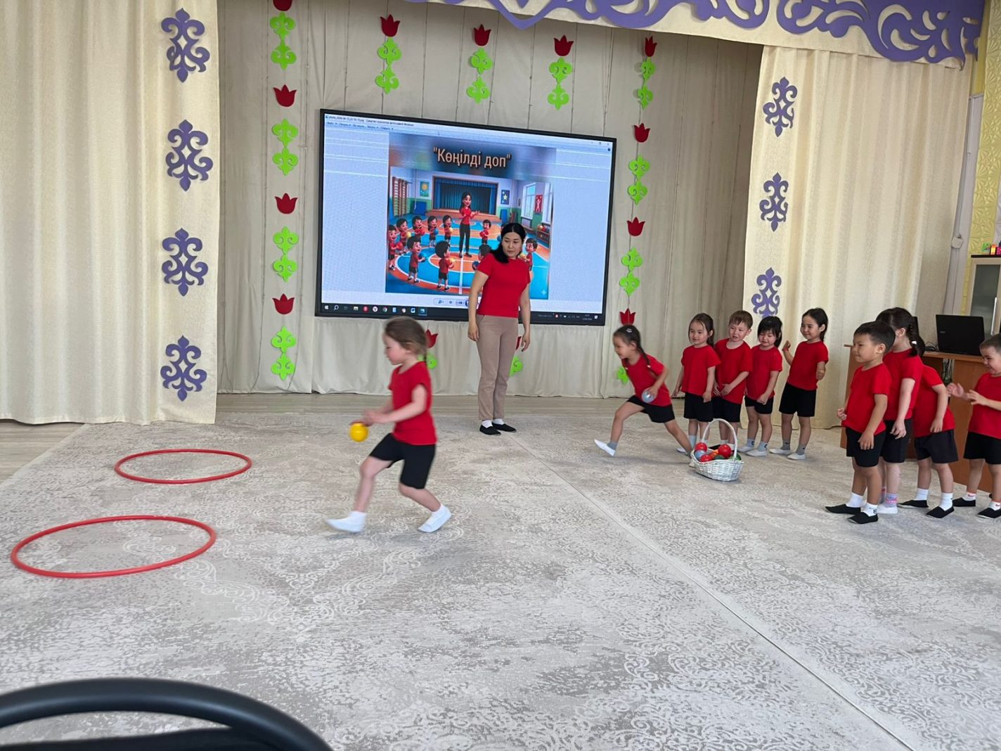 Мектепке дейінгі онкүндік аясында дене тәрбиесінің «Көңілді доп» ашық сабағы