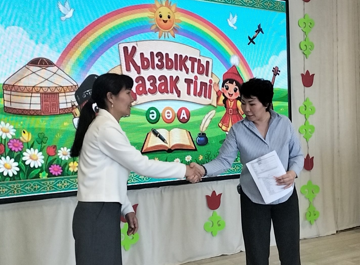 Мектепке дейінгі ұйымдардың онкүндігі аясында, сондай-ақ мектепке дейінгі және бастауыш білім беру арасындағы сабақтастықты қамтамасыз ету мақсатында №3 ЖББМ мектепалды сыныбының мұғалімі Бочкарева А.М. мен бастауыш сынып мұғалімі Исмаилова А.Б. қатысуымен «Балдырған» мектепалды тобында «Қызықты қазақ тілі» тақырыбында мазмұнды әрі танымдық ашық ұйымдастырылған іс-әрекет өткізілді.